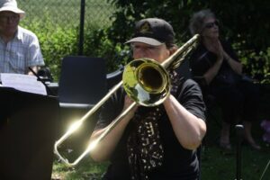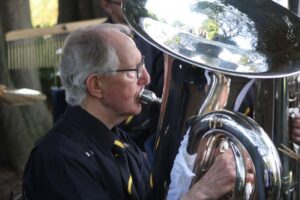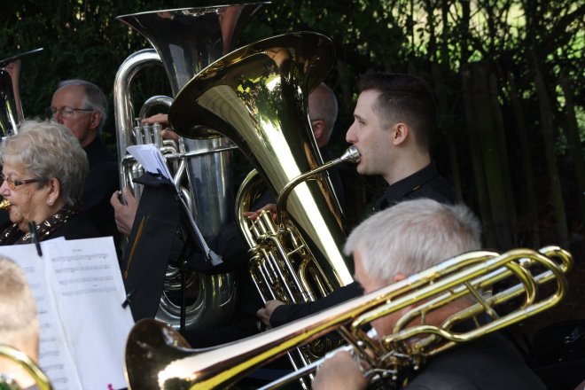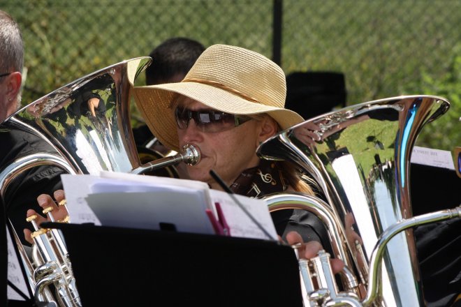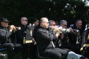 The band managed to find some shade under a very well spread tree on the hottest day of the year so far.
