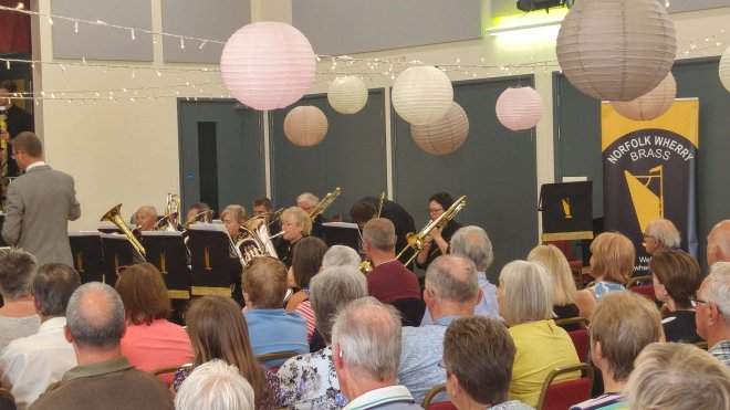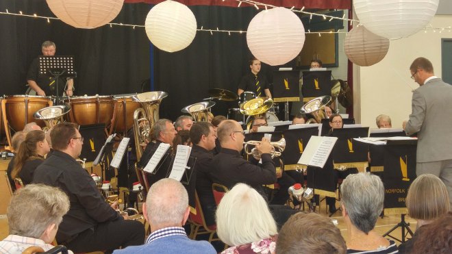 Lingwood was the venue selected for this first annual Memorial Concert for our great friend Dave. The venue had to be large enough to fit in almost 40 musicians and still leave room for an audience. The Village Hall has certainly ticked all the boxes. Very helpful staff and a fantastic audience in what we hope is the beginning of a lot more visits there – a Christmas Concert is already being talked about and I think only fixing a date remains to be sorted. I’m sure Dave was watching over us and if he was he would have loved every minute of it.